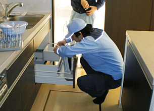 システムの設置完了後、お客さま入居前に施工者立会の上、家屋内に立入り、ディスポーザ部、専用排水管及び排水処理槽等が届出書類と整合しているかを確認しています。