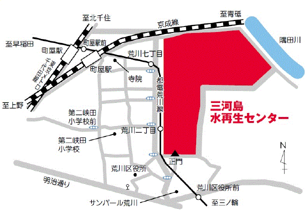 三河島水再生センターの水処理施設の上部空間を荒川区の公園として開放しています。北側、南側あわせて61,100平方メートルあるこの公園は、新東京百景にも選ばれています。 また、野球場、テニスコートのほか児童遊園コーナーや交通園などもあります。