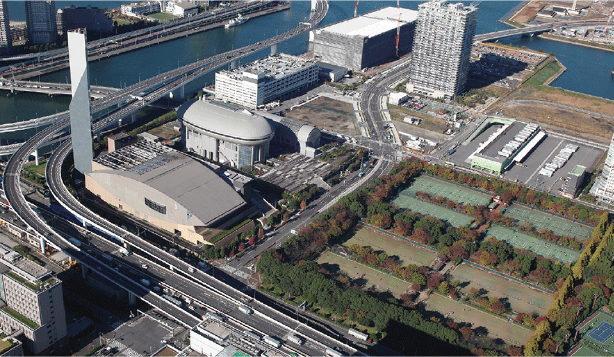 「東京ビッグサイト」行または「東京テレポート」行「有明一丁目」下車徒歩3分