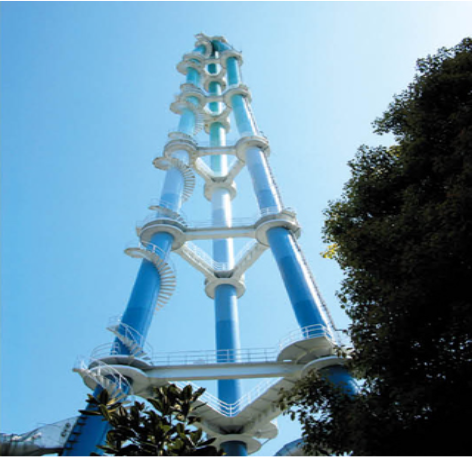 開設20周年を記念して、デザインを地域の小学生から募集しました。それまで赤白の塗装がされていましたが、さわやかなグラデーションの煙突として平成13年に生まれ変わりました。