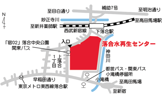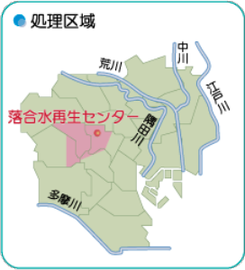 落合水再生センターは、新宿副都心に極めて近く、住宅地に囲まれた水再生センターとして環境に配慮した管理を徹底しています。処理区域は、落合処理区(3,506ヘクタール)のうち、中野・新宿・世田谷・渋谷・杉並・豊島・練馬区の一部です。