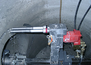 (専用の切削機により、人孔の壁を管外周に沿って切削して人孔と管の縁を切り、切削した溝に土砂や地下水の浸入を防止するためのバックアップ材とシーリング材を充填して接続部の耐震化を行います。
