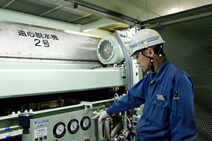 下水をきれいに処理するために、大量のエネルギーを使用しています。当社では、下水の処理過程で生じる汚泥を脱水、焼却処分していますが、蓄積したノウハウ・技術を活用することにより、電力使用量、補助燃料、薬品使用量と温室効果ガス排出量をバランスよく削減しています。
