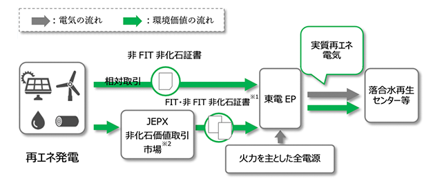 東京電力エナジーパートナー株式会社が提供する全電源平均電力に非FIT非化石証書を活用した実質再エネメニュー