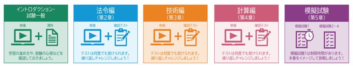 - 内容は、受験心得、法令分野、技術分野、計算分野と試験合格のために必要な範囲を網羅しています。