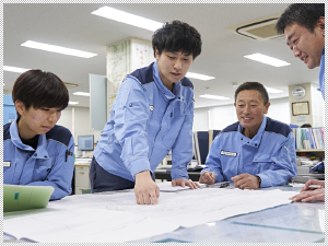 世田谷事業所では、幅広い年齢層の社員が勤務しています。世代間の交流や意見交換は活発で、若手社員が自由に意見を発信したり業務の提案ができたりする風通しの良さはTGSの大きな特長だと思います。何か問題が起こると社員同士の意見交換が始まり、若手のフレッシュな意見やベテランの経験に基づく意見が交わされ、1つのチームとして対策を講じます。このように、日々、社員が協力し合い、お客さまが安心して快適に暮らせるように下水道の維持管理に努めています。