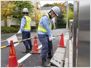 入社時は世田谷事業所に所属して、維持管理業務を担当していました。お客さまである都民や区役所などからの問い合わせ対応のほか、工事の設計や監督、施設の巡視点検、電気やガスなどの他企業工事との調整など、下水道事業の最前線と言える業務です。